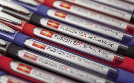 На даний момент виробнича потужність UNIMAX – 2 500 000 ручок на день. Письмове приладдя UNIMAX – це високоякісні ручки, у виробництві яких використовуються найсучасніші технології і матеріали.